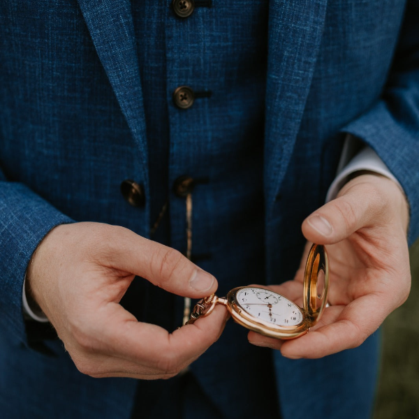 仕上げのディテールには、ネイビーのキュプラ裏地、クラシックなブルーのボタン、サイドベンツ、開いたボタンホール付きのノッチ付きラペルが含まれます。ジャケットには実用性のために、留め具付きの内側の書類ポケット、カードポケット、携帯電話ポケット、追加のペンポケットが付いています。